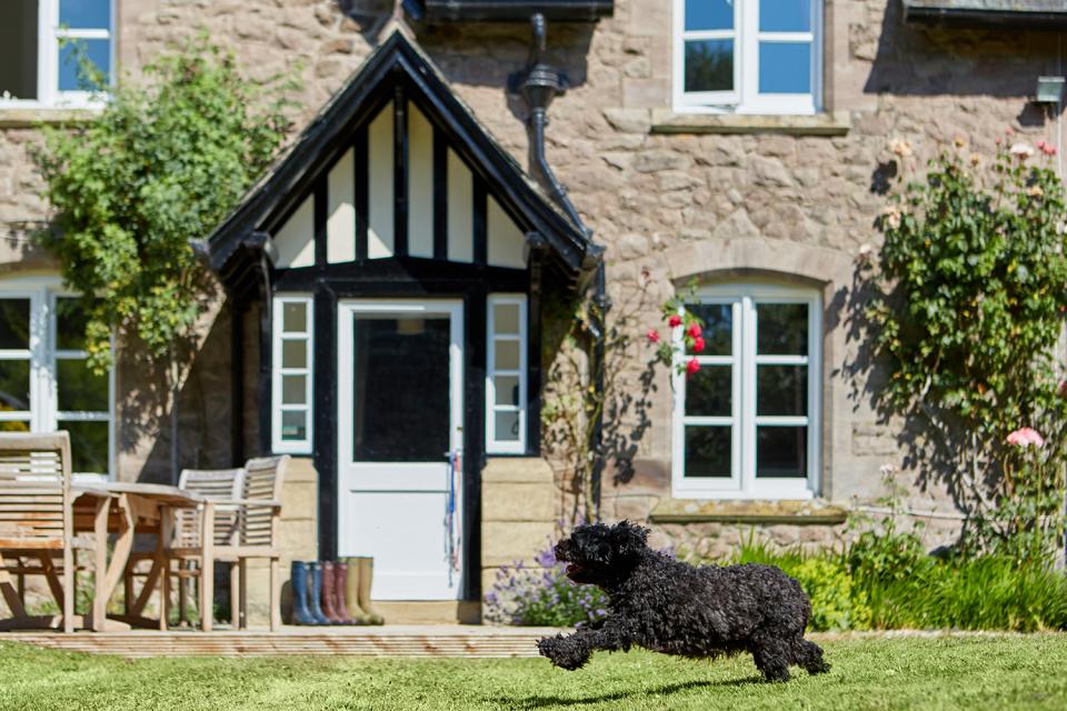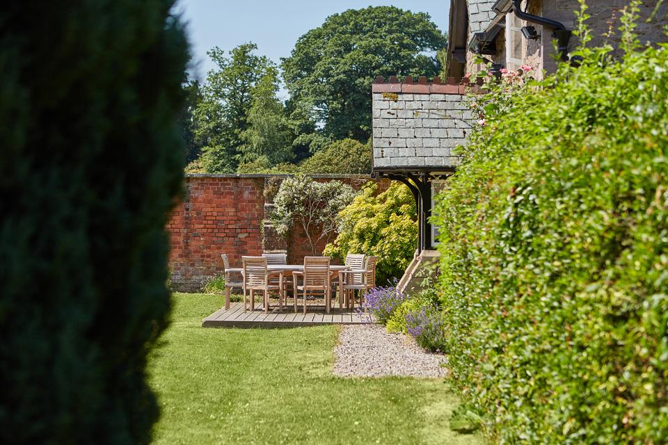 Gardener’s Cottage, an old stone traditional estate cottage, sits in its own large open gardens,. There is a sweet kitchen garden with original eighteenth-century red brick walls and an enclosed private courtyard to the back. Dog friendly, but NB not dog secure apart from the small rear courtyard.